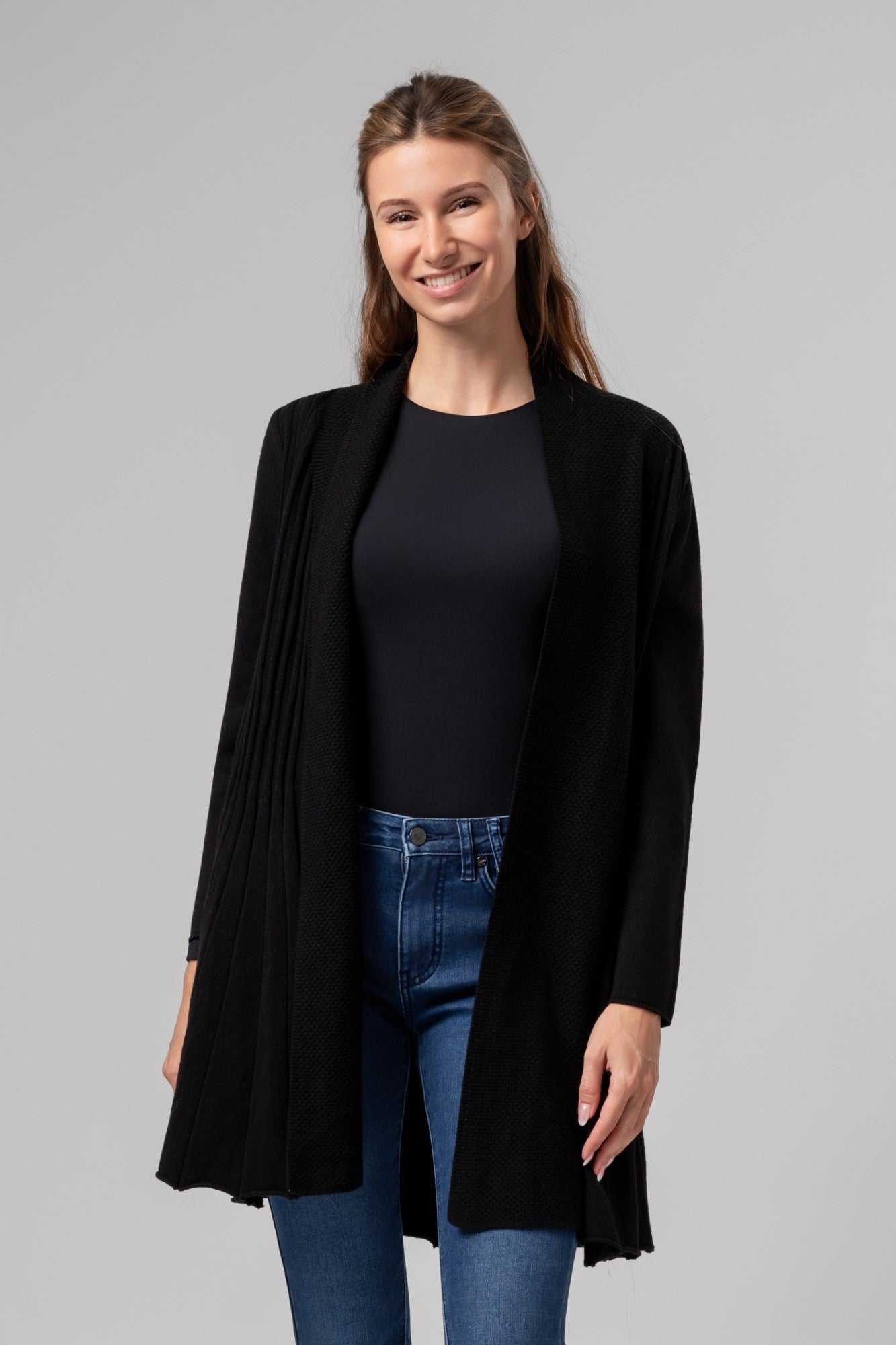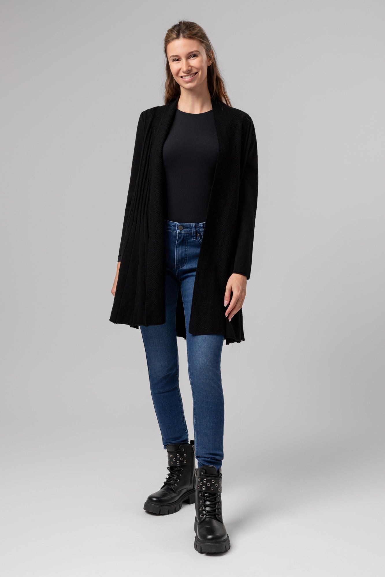 A Penny – KnitLine kardigán a kényelmes viselet és a kifinomult megjelenés tökéletes kombinációja. Letisztult, nyitott fazonja és finoman strukturált kötött anyaga elegánsan simul a testhez, miközben szabad mozgást és egész napos komfortot biztosít. Ideális választás hűvösebb napokra, irodai outfitekhez vagy stílusos hétköznapi megjelenéshez.
