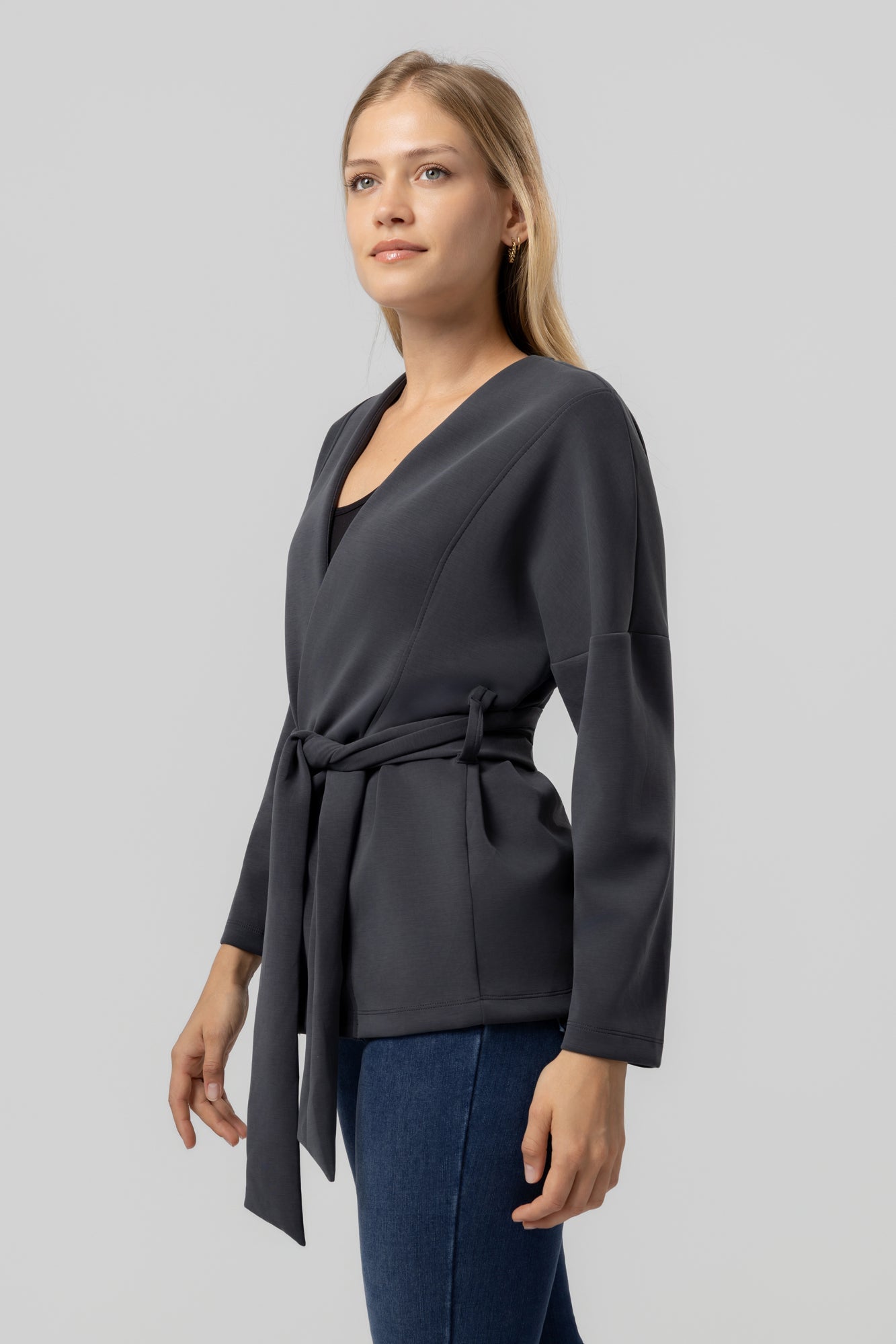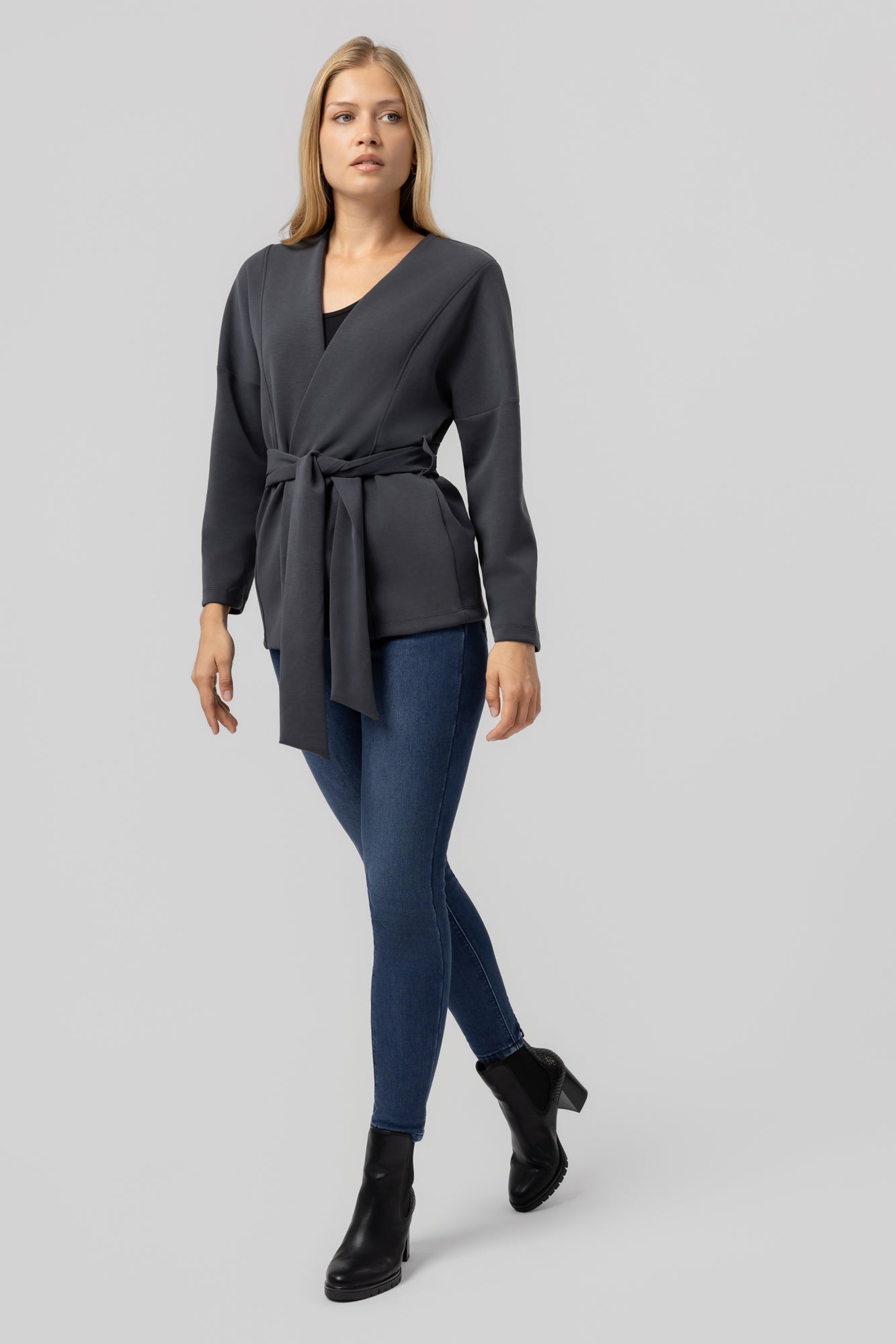 Az Ajda – ChicLine kardigán a modern nő ruhatárának kifinomult alapdarabja. Elegáns, átlapolt kialakítása és megkötős dereka nőies sziluettet formál, miközben kényelmes viseletet biztosít egész nap. A strukturált, mégis puha anyag tökéletesen illeszkedik a testhez, így ideális választás irodai megjelenéshez, hétköznapi eleganciához vagy akár alkalmi összeállításokhoz is.